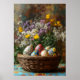 Feliz Pascua con este saludo festivo en un suave color de agua pastel crema con vibrantes huevos de Pascua y elementos florales. Es hora de la caza de huevos en Pascua con flores.