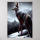 chacal con respaldo negro en la montaña nevada en un clima nevado. Este es un arte generado por IA.