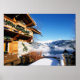 28" x 20", papel Poster de valor (mate). Hermoso chalé suizo rodeado de nieve profunda. Montaña cubierta de nieve en el frente.