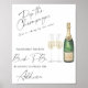 Una botella de champán de color agua elegante con dos copas de champán y un texto "Pon el champán. Ella está cambiando su nombre".