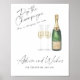 Una botella de champán de color agua elegante con dos copas de champán y un texto "Pon el champán. Ella está cambiando su nombre".