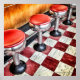 Square poster print of retro soda fountain stools by photographer Joanne Mariol.
