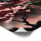 Serene landscape at dawn, surrounded by vibrant cherry blossoms,
