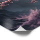 Serene landscape at dawn, surrounded by vibrant cherry blossoms,