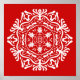 Esta mandala blanca se sienta sobre un fondo rojo brillante. El color es enérgico y cálido. Parte de la colección Erghenn Mandala.