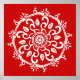 Esta mandala blanca se sienta sobre un fondo rojo brillante. El color es enérgico y cálido. Parte de la colección Payon Mandala.