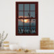Póster Cherry Wood Faux Window Illusion - Flock of Birds