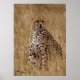 Una gueparda lamiéndose las chuletas mientras mira a una presa