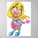Póster Chibi Blonde Girl Rocker Playing Pink Bass Guitar