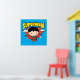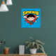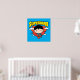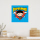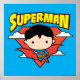 Echa un vistazo a Chibi Superman volando en las nubes con su súper nombre de héroe sobre la cabeza y forma de escudo de puntos de polka rojo detrás de él.