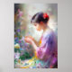 Una pintura generada por IA de una chica sosteniendo una flor en sus manos.
