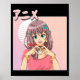 Póster Chica anime japonés retro vaporwave estético rosad