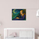 Este encantador diseño de fantasía representa a una pacífica chica con el pelo dorado que corre, usando audífonos mientras sostiene suavemente a un gato negro con un colgante brillante. Detrás de ellos, un cielo nocturno de ensueño con una luna creciente y estrellas arroja un brillo mágico sobre casas pintorescas y ríos serpenteantes. Los ricos tonos verde azulados, violetas y dorados le dan al lugar un ambiente cálido y caprichoso, lleno de confort y maravilla.