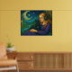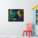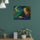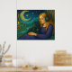 Póster Chica caprichoso con gato negro bajo la luna creci
