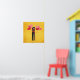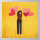 Dibujo lindo de un chica sosteniendo un montón de globos con forma de corazón. Cuidada y caprichosa, y jovial, contra un elegante fondo dorado texturado.