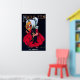 Una poster de Halloween de época divertida con una chica de calabaza y su gato negro.