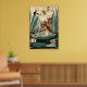 La imagen de este poster se adaptó desde una postal vintage. Muestra a una joven en una almohadilla de lirio con flores y una mariposa.