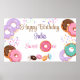 La pancarta de la chica Donut 1 cumpleaños es un diseño lindo con donuts dulces para las niñas