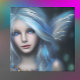 Arte digital que representa un hermoso hadas mágico etéreo con ojos y cabello azul brillante. corazón generativo
