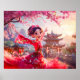 Póster Chica de historietas bailando con flores de cerezo