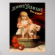 Poster de teatro de época para Jenny Yeamans con una niña pequeña lavando a su perro en un barril de madera. El jabón y el cepillo de perro están en el suelo. Perfecto para los amantes de los posters de teatro y dueños de perros.