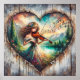 Este poster presenta una decoración rústica de madera con un chica tocando el violín en el interior de un corazón tallado. Perfecto para los amantes de la música y para los amantes del país.