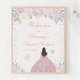 Este elegante y glamoroso cartel de bienvenida de 16 dulces invernales presenta una hermosa princesa con el pelo de morena y piel clara en un vestido de bolas rosa. El texto combina el guión manuscrito y las fuentes sans serif modernas para un aspecto elegante y sofisticado. Los arreglos florales, copos de nieve y confitis de plata crean la perfecta combinación de rústico y moda. Gráficos de www.etsy.com/uk/shop/SunflowerDayLove