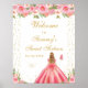Este elegante y glamoroso cartel de bienvenida de dieciséis años presenta a una bella princesa con el pelo rubio y piel clara en un vestido rosa de bola. El texto combina el guión manuscrito y las fuentes sans serif modernas para un aspecto elegante y sofisticado. Los arreglos florales, las mariposas y los confeti dorados crean una perfecta mezcla de rústico y moda. Gráficos de www.etsy.com/uk/shop/SunflowerDayLove