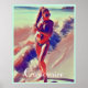 Modelo de chica de playa de Bikini parado en el borde del agua con cola de caballo a personalizar con tu propio saludo, nombre, mensaje, etc