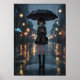 Póster Chica de Rainy Night Anime con paraguas