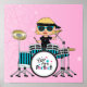 Un lindo personalizado de un chica rubio tocando los tambores en una banda de rock, usando gafas de sol y luciendo muy fresco y gracioso. El fondo está lleno de muchas estrellas de color rosa para la estrella de rock del futuro. Esto se creó en parte con clipart adquirido en www.realdealclipart.com. sgb01