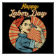 Póster Chica del feliz Día del Trabajo y fuerte movimient