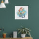 Póster Chica en bicicleta con Poster de flores
