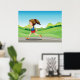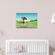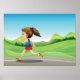 Un chica que recorre una pista en el campo. Este diseño parece realmente efectivo en este Poster