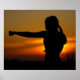 Silhouette de un chica de karate con fondo de puesta de sol. frontiernow.com