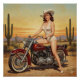 Póster chica en motocicleta de la vieja escuela Retro Pin