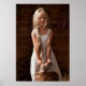 Póster Chica en un granero con un gatito en una canasta