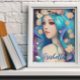 Poster personalizada con arte de cuento de hadas. chica de hadas Bonito con pelo azul y flores en su cabello y ojos azules. Fantasy art ai art. generativecontenent