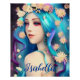 Poster personalizada con arte de cuento de hadas. chica de hadas Bonito con pelo azul y flores en su cabello y ojos azules. Fantasy art ai art. generativecontenent