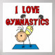 Un chica con una figura de palos hace una mano en la alfombra practicando su rutina en el suelo y el texto dice "Amo la gimnasia" en camisetas de gimnasta chica, tazas, bolsos de té, mousepads, pegatinas, tarjetas y otras prendas de gimnasta chica y artículos de regalo.