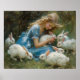 Póster Chica Jugando Con Conejitos Blancos En Pascua