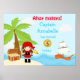 Un Chica pirata de la Brunette Cute en poster de la celebración del cumpleaños rojo para esa ocasión especial. Haga que su hijo se sienta especial con su propio poster para colgar en la pared. El texto puede cambiarse a sus propios detalles. Pintura de Clipartopia (113)