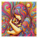 El 4 de junio es el Día del Gato. Diseño característico chica psicodélica abrazando a su gato.