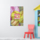 Chica colorido poster de softball con softball amarillo brillante y rosa y un ligero efecto grunge - personalizar con su número y nombre jersey - de katz_d_zynes