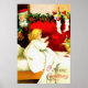 Chica y Santa en la víspera de los Navidades, escena vintage.