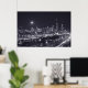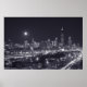 Fotografía nocturna de Chicago, Illinois. Imagen del lado oeste de Chicago. Esta imagen es en blanco y negro con un ligero tono azul por diseño.