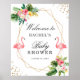 Tropical Floral Flamingo Chicas gemelos Baby Shower Rótulo Poster.
