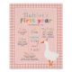 Este lindo poster de chicas de primer año de edad presenta una manosa tonta con un gorra fiesta rosa, con un borde rosa de gingham, y puede ser personalizado con detalles del primer año de su hijo en tipografía colorida. Los detalles incluyen primeros favs, altura, peso, número de dientes y primeros logros. ¡El diseño de una granja floral perfecto para celebrar el primer año de tu pequeña!