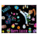 Chicas Karate Happy Easter Decorative de diseño cargado de coloridos huevos de Pascua, una chica haciendo su mejor patada Karate, una cesta de pascua, una linda chica saltando de un Huevo de Pascua, una variedad de flores y por supuesto un conejo conejo. Dice "Feliz Pascua" "Karate" y es personalizado con el nombre de su hijo!