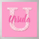 Nombre del chica con la letra U inicial. Impresión de patrones de guijarros rosados. Poster decorativo para la habitación de los chicas. El texto se puede editar para que este poster sea único.